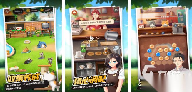 猫语咖啡能让人瞬间治愈,刚打开就能看到阳光透过玻璃窗洒进猫咖,几只猫咪在沙发上打盹,玩家接手的这家店有点特别,前厅是给客人做咖啡和甜点的地方,后院则是猫咪的小天地,做咖啡的原料需要通过合成获取,比如把小麦合成面粉,再和鸡蛋、牛奶合成蛋糕胚,过程像搭积木一样有趣。