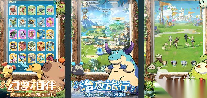 云海之下的画面特别治愈,里面的幻兽长得都很可爱,有的像会飞的小绵羊,有的像拖着尾巴的星星,收集这些幻兽特别有成就感,玩的时候不用一直盯着屏幕,把角色和幻兽组成小队,它们就会自动去冒险,过一会儿回来就能拿到经验和材料,特别适合碎片时间玩。
