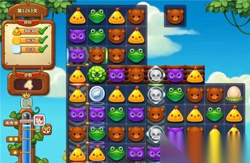 《开心消消乐》1263关通关攻略,1263关是消除小黄鸡,蜂蜜和雪块的关卡,玩家需要在26步之内消除300个小黄鸡,36个蜂蜜和35个雪块,难度指数四颗星。这一关的难点在于有银币和木板的阻碍。现在就让为你们介绍开心消消乐1263关三星攻略。