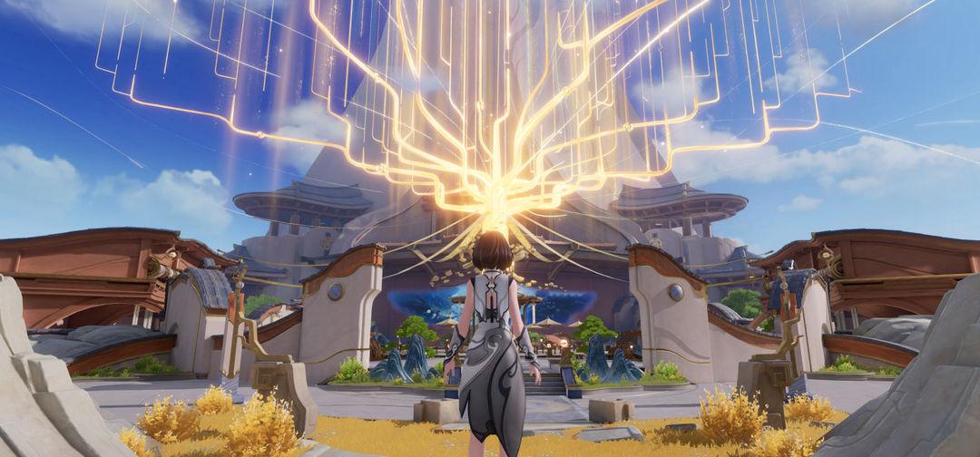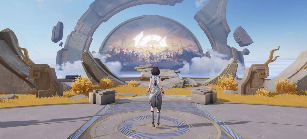 在王者荣耀十周年之际,稷下学院也迎来新的面貌。高大巍峨的建木屹立于学院中央,金黄色的枝干向着天空延伸;在远处,一座云雾缭绕的壁画悬浮在半空,壁画上面雕刻着英雄。通过壁画前的石板路,前往一片不可思议的绘卷空间。