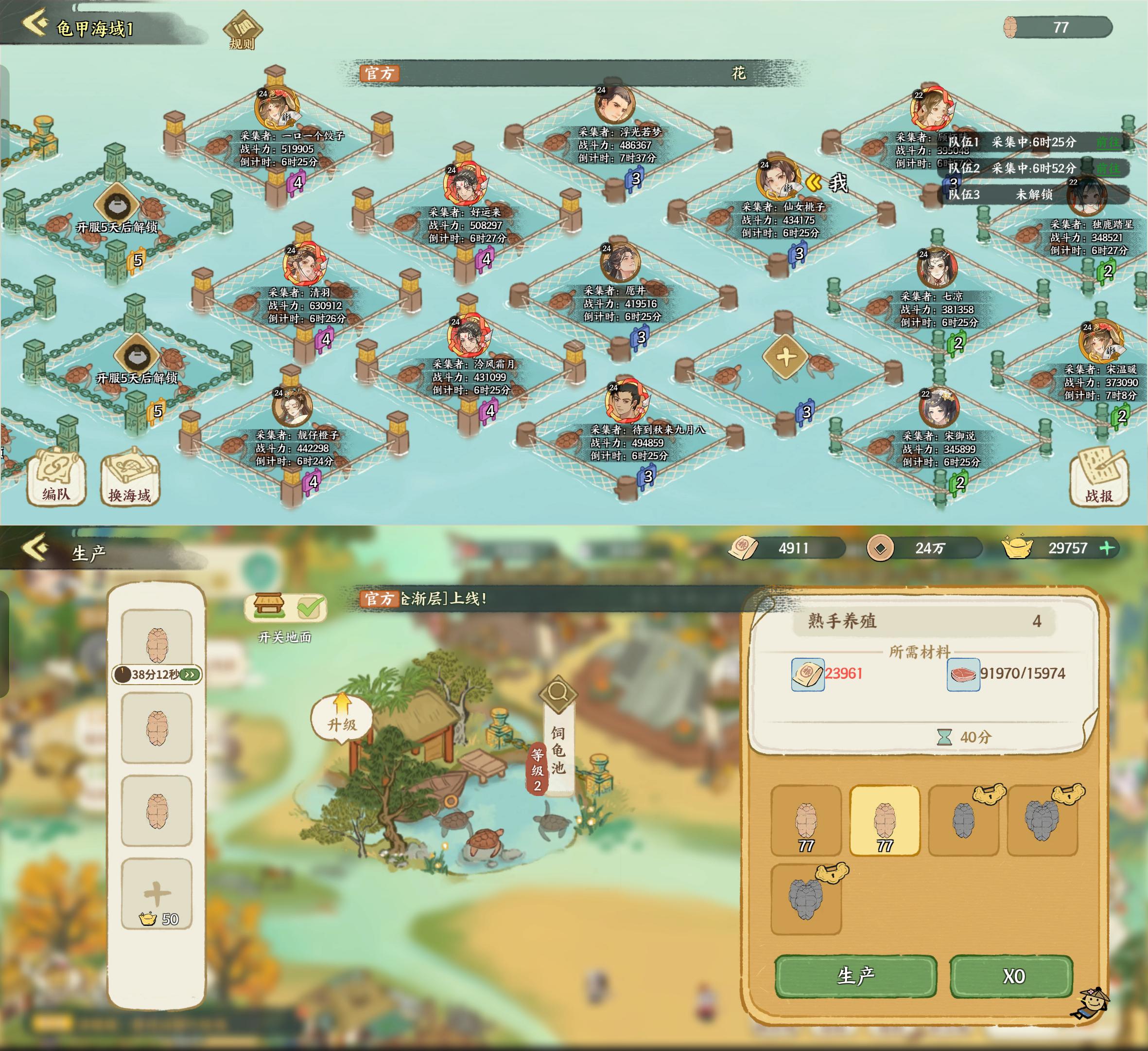 龟甲海域虽然有PVP性质,但非常弱,还会根据人数新开海域,平民拿到3级及以上完全没有问题(3、4级甚至产量基本相同)