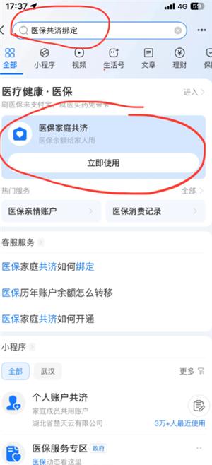 1一定要选对入口,支付宝直接搜索"医保共济绑定"