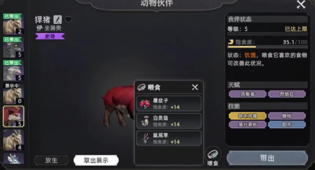 玩家选择骑野猪,之前在游戏地图当中要找到野猪,其中棕鬃野猪是比较常见的一种野猪方式,当然这种野猪其实是可以驯化的,简单来说就是玩家如果想要骑野猪的话,就需要寻找这种野猪。玩家想要找到这类野猪,需要在平原或者是在丛林边缘,在寻找野猪的时候可以听声音来辨认。对于新手玩家来说,在寻找棕鬃野猪的时候,要找那种幼年的野猪之后将其驯服。玩家成功的捕捉了棕鬃野猪之后,在驯服的时候先对它的血量进行控制,另外玩家要躲避他的冲撞,毕竟在驯服的过程当中,野猪会持续性的移动,而玩家所需要做的就是尽可能的避免被野猪正面冲撞。从而导致自身受到伤害。