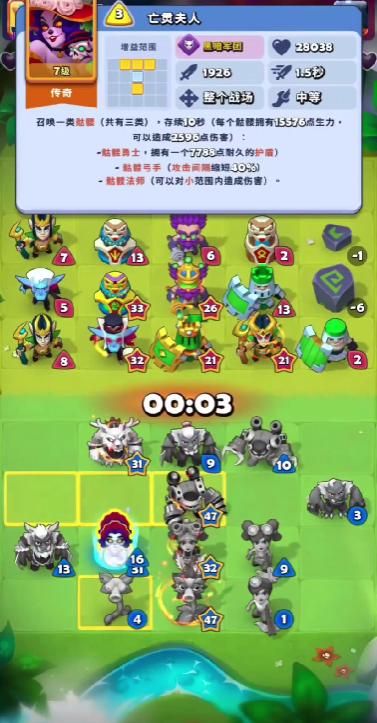 如若玩家想要使用亡灵夫人作为主要C位,则需要侧重收集黑暗军团的各类角色,其中就包含有傀儡、巨兽等等,同时,玩家还需要保证续航能力,可以在阵容当中,放置图腾一类的单位,增强回血效益。