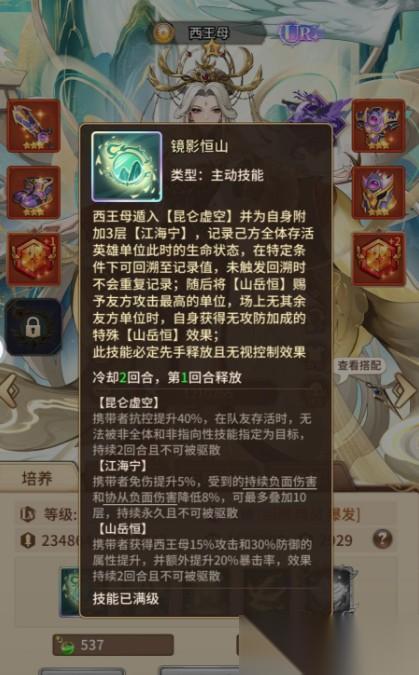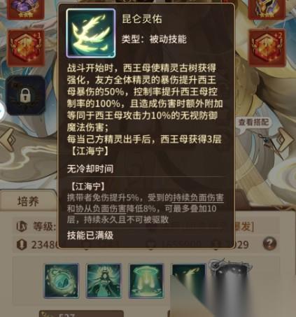 二技能是西王母的自身加成,让西王母很难被控的同时增加伤害。