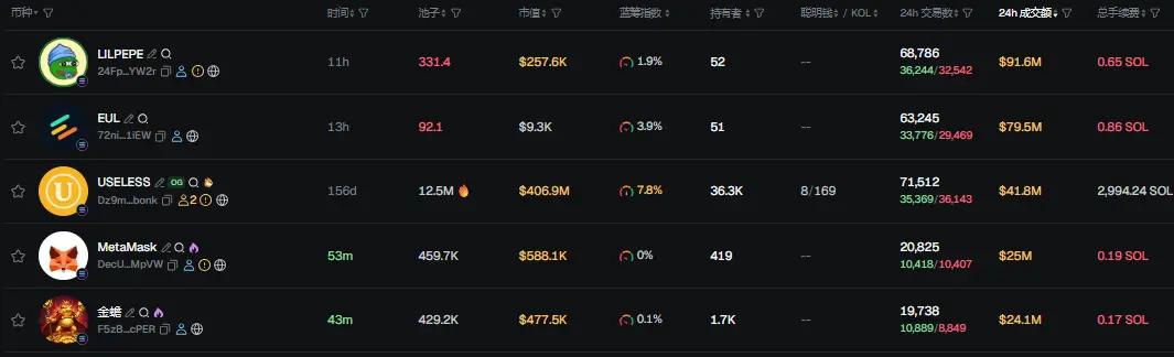 过去 24h Solana 热门代币前五依次为:LILPEPE、EUL、USELESS、 Mask、金蟾
