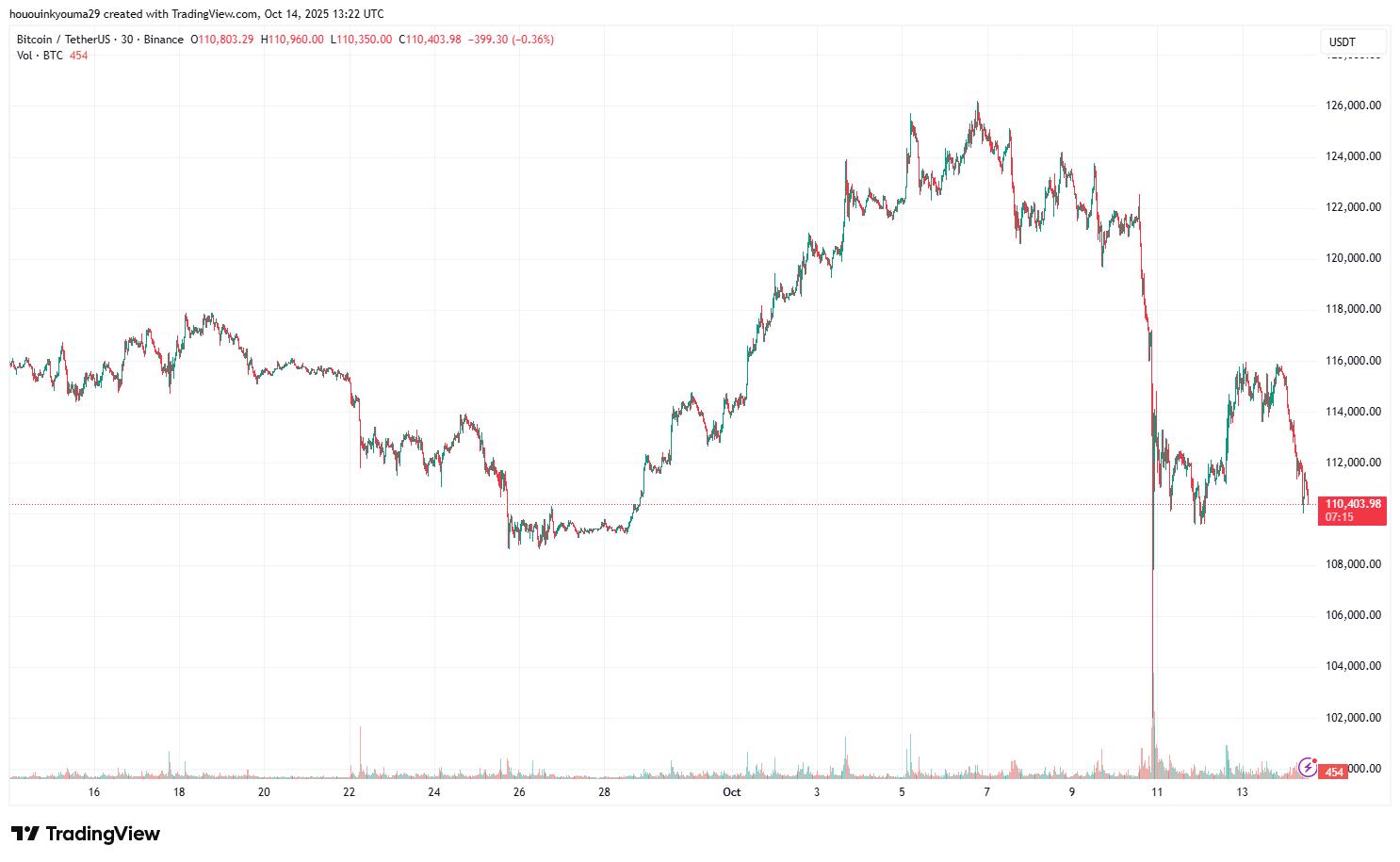 在撰写本文时,比特币的交易价格约为 110,400 美元,比上周下跌了 11% 以上。