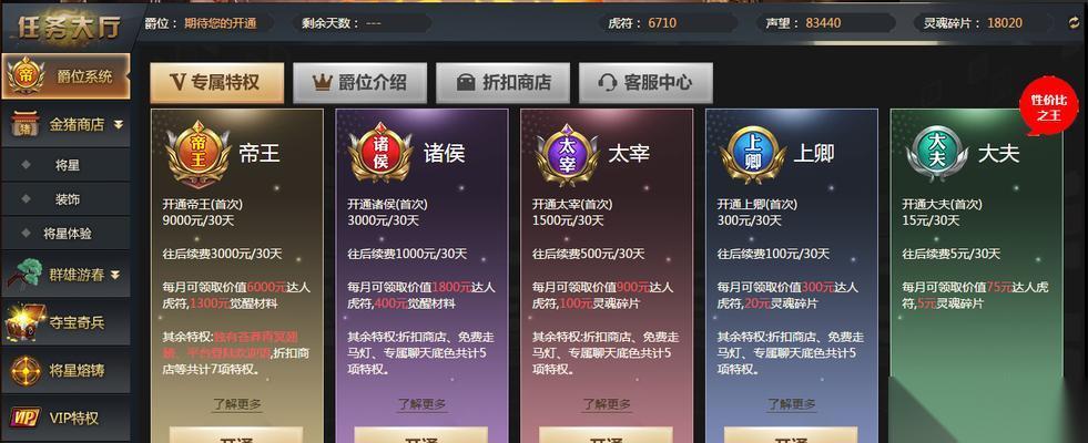 《六龙争霸3D》作为一款久负盛名的策略游戏,一直以来都备受玩家们的喜爱。其中的爵位系统更是成为了许多玩家们追求的目标。但是如何在游戏中得到高爵位,却成为了许多玩家们所困扰的问题。本文将为大家详细介绍《六龙争霸3D》爵位系统的玩法,帮助大家更快地提升自己的爵位,成为真正的贵族。