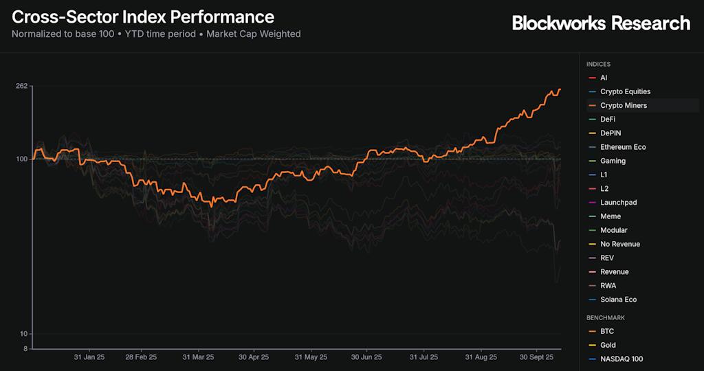 领导层仍然高度集中。重量级的CLSK、IREN和WULF今年迄今均实现了超乎寻常的三位数增长,这得益于三大关键竞争优势: