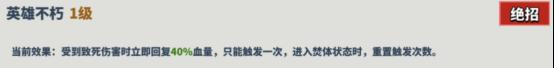 描述:受到致死伤害时立即回复40%血量,只能触发一次,进入焚体状态时,重置触发次数。