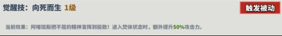 描述:阿喀琉斯把不屈的精神发挥到极致!进入焚体状态时,额外提升50%攻击力。