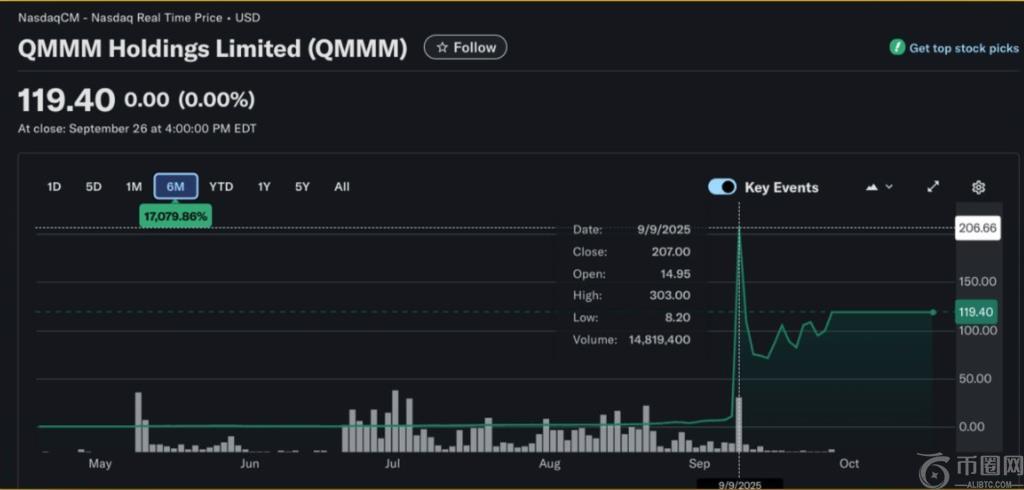 在加密储备计划出台后,QMMM 股价飙升 960%,随后在美国证券交易委员会调查期间暴跌。 CZ 要求所有 DAT 公司使用第三方托管人并允许投资者审计。 YZi Labs 将仅资助经过验证的托管和透明操作的 BNB DAT。美国上市公司QMMM Holdings宣布一项1亿美元的加密货币储备计划后,引发了市场狂热。受网络炒作和散户投资者热情的推动,该消息使其股价飙升近960%,从约4美元攀升至盘中高点约303美元。