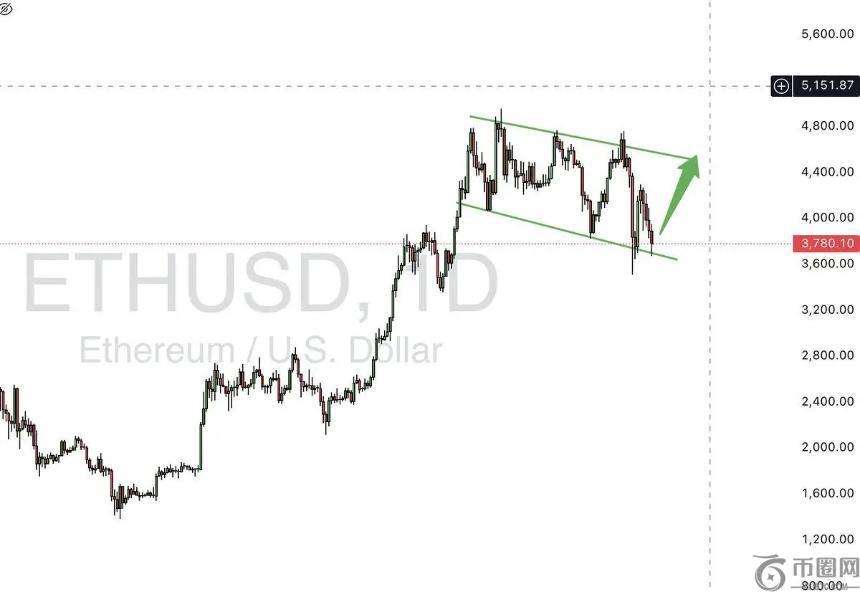 以太坊跌破3800美元后引发了市场的激烈讨论。例如,分析师Satoshi Stacker警告称,如果周线图上的MACD指标转为红色,则ETH价格可能会回撤18%-80%。不过,另一些专家则对比特币2017年的周期进行类比,暗示一旦突破阻力位,或将迎来爆发性上涨。