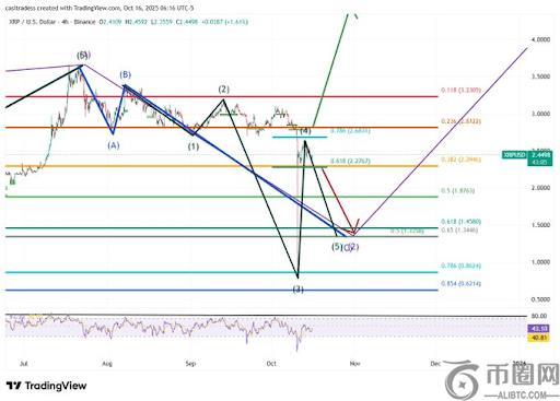 CasiTrades 还提到,如果当前的 XRP 价格走势是深度V 型复苏,那么应该会出现对 2.82 美元关键阻力位的强劲突破。然而,这一突破并未显现,因此她倾向于认为市场需要再经历一波下跌才能完全释放下行压力并改变市场情绪。她预测,下一波下跌可能重新测试 1.46 美元附近的 0.618 斐波那契回撤位,或 1.35 美元附近的黄金口袋位。