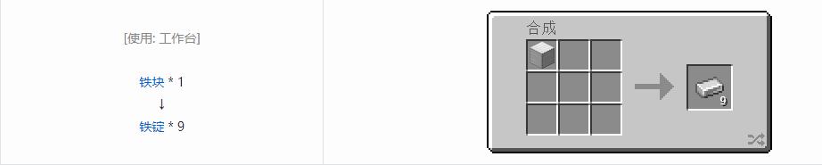 学徒级别的盔甲匠村民有 50% 的概率以 1 个绿宝石的价格收购 4 个铁锭;学徒级别的工具匠和武器匠总是以 1 个绿宝石的价格收购 4 个铁锭,作为其交易的一部分。(仅 Java 版)