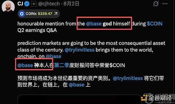 结合Jesse之前的一系列针对性发文以及CJ是Jesse脑残粉的事实,很难不让人猜测Limitless这件事是否是CB阵营利用CJ进行的攻击。如果放在更大的世界舞台来看,这不正像极了中美之间的对抗吗?