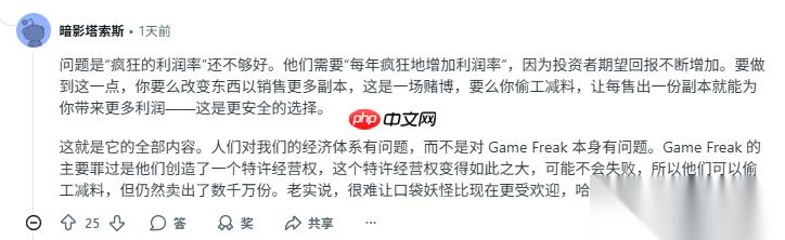有玩家在评论中坦言,持续期待宝可梦系列能有所突破“只会带来失望”,认为当前的作品水平已经反映出其真实现状。另一位网友则表示,自己曾伴随宝可梦成长,但随着系列的变化,兴趣正逐渐消退,并提到类似现象也出现在《游戏王》《万智牌》《使命召唤》等童年经典系列中。