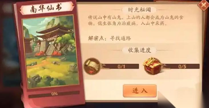 南华仙书的过关条件是摧毁关卡中的帐篷并触发沿路的符箓,在特定的路线中收集5个宝箱和最后的仙书就能过关。在最开始进入副本中就能看到左边有一个帐篷,将其摧毁之后沿着道路前进,一直走到对底部后向右转,在第一个分岔路口直接往前走可以看到第一个宝箱。打开宝箱往地图的中间走去触发一个金色的符箓,这个符箓是解开左上角道路的关键,解开之后不要先去那里,在地图中间的上方角落里可以看到第2个宝箱,然后再去左上角拿到第3个宝箱,在右下角是第4个宝箱的位置。在最后把阻断道路的中间的帐篷给摧毁可以获得南华仙书,去右上角获得第5个宝箱,这样5个箱子和南华仙书全部到手可以通关了。