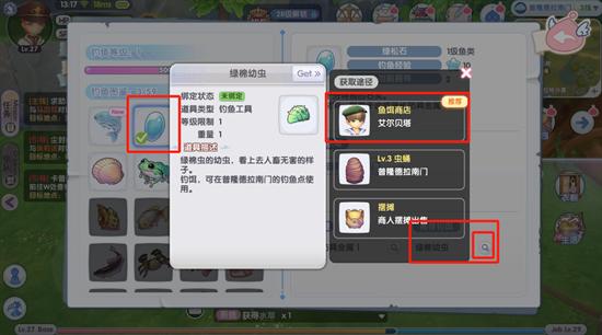 再去钓鱼原材料的图鉴中,找到对应原材料,它的推荐钓饵,去刷指定的怪等掉落,或者去鱼饵商店购买后再回来钓鱼,能更高效得产出我们所需的指定材料。