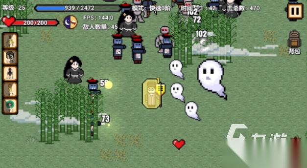 道士先生是加入了灵异色彩的道士主题割草游戏,肉鸽割草的战斗设定帮助大家获得了更多的道具,各类辟邪道具专门克制恶鬼和僵尸显得十分耐玩,超棒的粒子特效、萌系像素角色看上去很精致,尤其是黄袍道士的像素造型显得超级滑稽,沉浸式的肉鸽战斗快感给人一种斩妖除魔的既视感。
