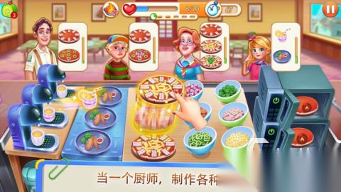 《疯狂美食街》在本部作品中你将以主厨和老板双重的身份,来恪尽职守的对美食店铺进行经营,游戏通过全程对话的形式,来展现了客人对于美食的制作和时间要求,另外又针对配菜以及烹饪环节,在随着玩家点出屏幕之后,都会生成一段令人心神飘荡的动画,在人满为患时,玩家需要增设装置,并开出高薪来招聘服务员。