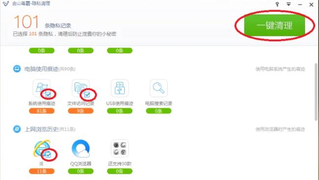 金山毒霸如何进行隐私清理