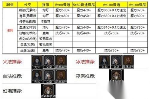 二、法师:游戏中的多面手,进可攻,退可守,通过控制调整战斗节奏。 1、元素师分支不单有强力的单体、群体魔法,还有群体回复能力。 2、附带整个游戏最重要的属性“技巧”的增强效果,可以提升团队的实力。 3、巫医分支则具备了较强的单体输出、控制、回复,使法师成为游戏中的多面手。 4、转职优先级:法师→元素师→元素导师→大法师→首席法师→传奇法师/岩浆法师/霜寒法师。 5、转职第二级:法师→巫医→进阶巫医→巫毒大师→诅咒先知→灵魂贤者。