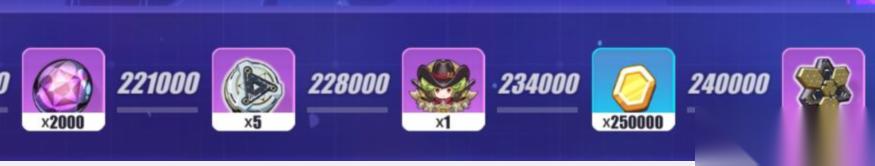 目标要求:区域总和达到240000分。水晶x120 目标要求:单区域首通,单区域总和40000分。爱因斯坦环磁机x40 目标要求:全区域总和按阶段获取,最高要求221000分。超导金属氢x110 目标要求:单区域等级达到4级,全区域总和按阶段获取,最高要求240000分。大量金币,星石 目标要求:全区域总和按阶段获取,最高要求240000分。晶体核心 目标要求:全区域总和按阶段获取,240000-252000分内 联动版本活动:【珍藏·是时拾识】:通关任意关卡9关可获得 意识勾玉x1