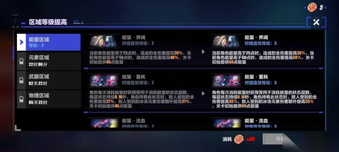 第一个区域的主题是能量,能量获取,消耗等操作可以获得强化能力。