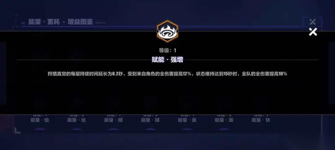 赋能·强增延长能量·蓄耗的【狩猎直觉】每点sp转化层数的保持时常,并且一直消耗能量保持15秒后有额外增伤。