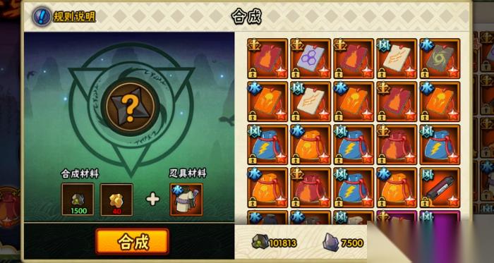 忍具合成功能允许将低品质装备作为材料,但究极忍具必须通过传说套装合成才有概率产出,过程存在较大随机性。元素属性系统是忍具搭配的关键,火、雷、风、土、水五种属性存在相互克制关系。雷属性因获取难度高且对手防御普遍偏低,成为多数玩家的优先选择。建议整套忍具统一属性类型,可触发最高元素加成效果。