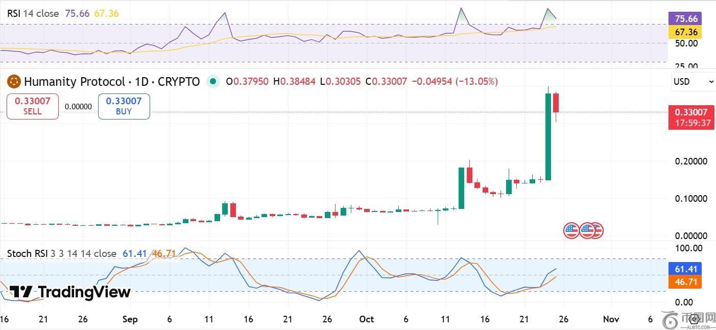 Humanity [H] 上涨 138% 后触及 0.39 美元高点 涨势能否持续