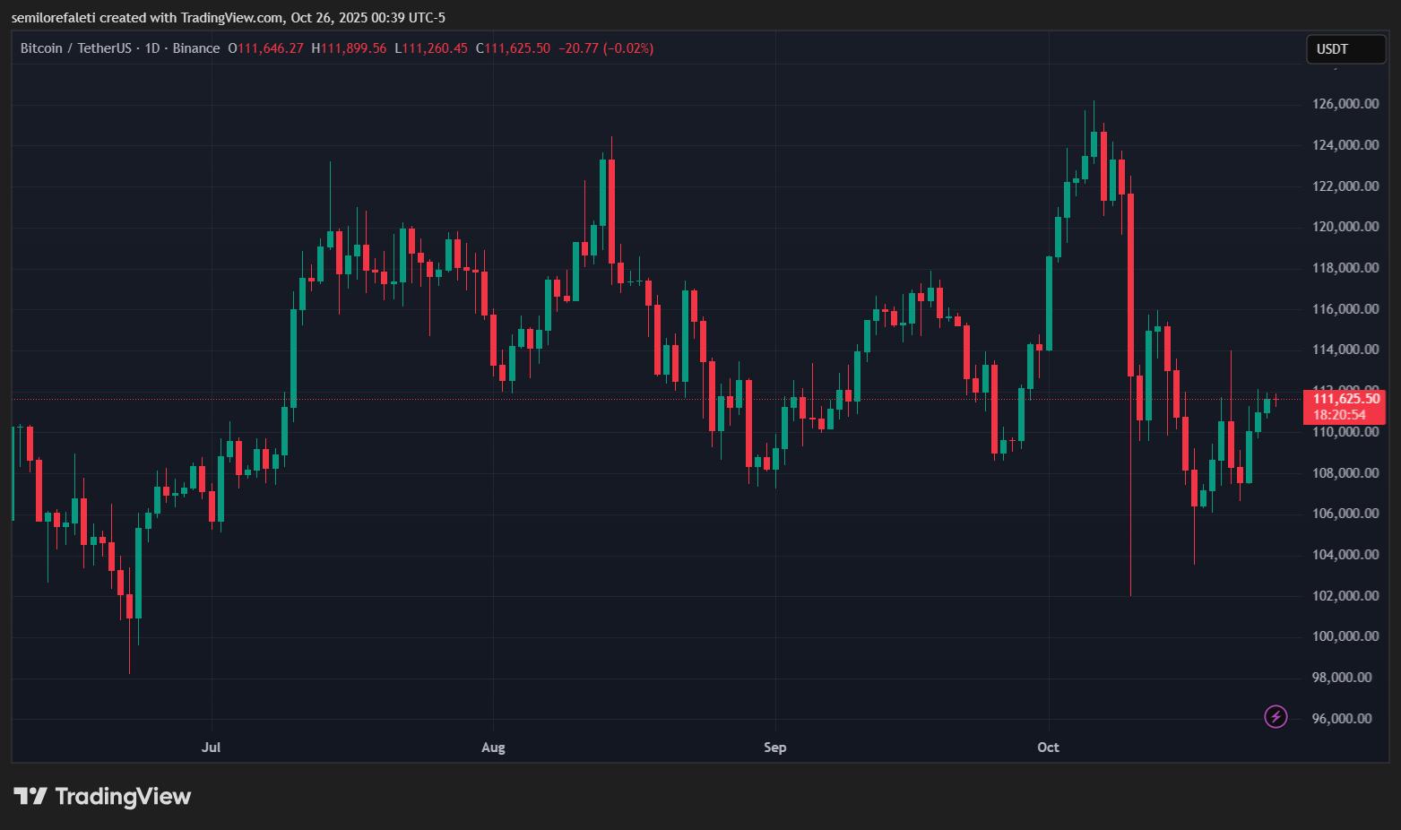 截至本文撰写时,比特币的价格约为111,613美元,过去24小时内未出现显著波动。
