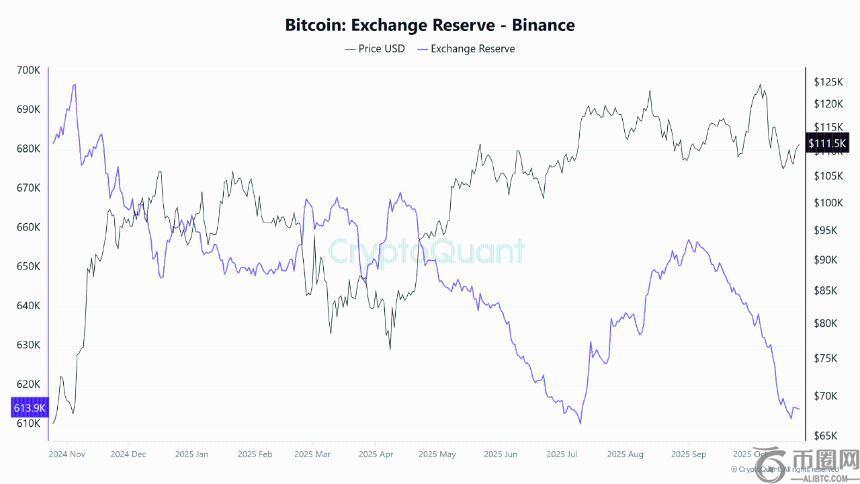 Taha指出,币安的比特币交易储备已显著下降,目前接近61万BTC,这是自7月以来的最低水平,也是去年以来的低位之一。尽管2025年全年比特币储备呈现逐步下降的趋势,但最近的降幅尤为剧烈,这暗示市场可能即将迎来重大变革。