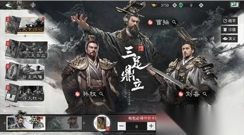 以“三足鼎立”卡包举例,本卡包内获得的【绝世】品质英雄固定为曹操、孙权、刘备。