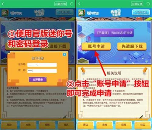 迷你世界先遣服账号申请方法