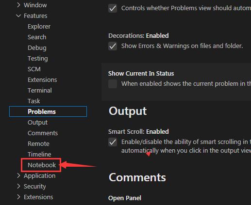 2、在给出的新界面中,点击左侧"Features"选项中的"Notebook"。