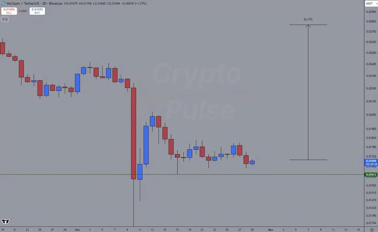 在政治动荡的背景下,唯链 (VET) 凭借其稳健的积累趋势持续吸引市场关注。据 CryptoPulse 分享的市场洞察显示,唯链在 0.016 美元附近的稳定走势反映了强劲的积累力量,这可能预示着即将到来的突破。