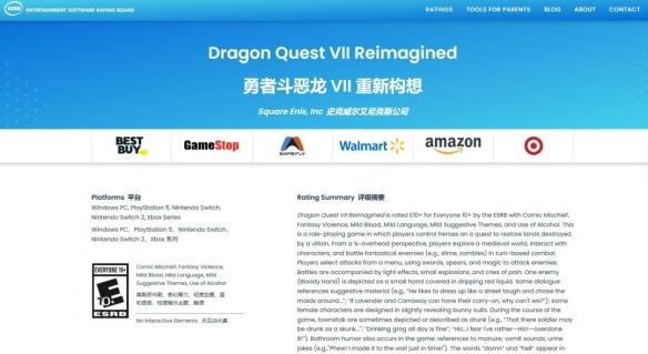 勇者斗恶龙7RE ESRB评级已出 E级推荐10岁以上游玩