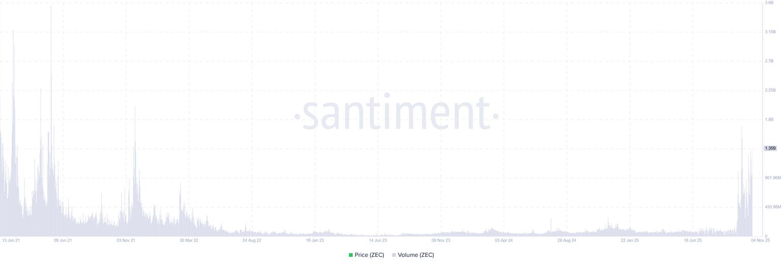 Zcash交易量图表。:Santiment