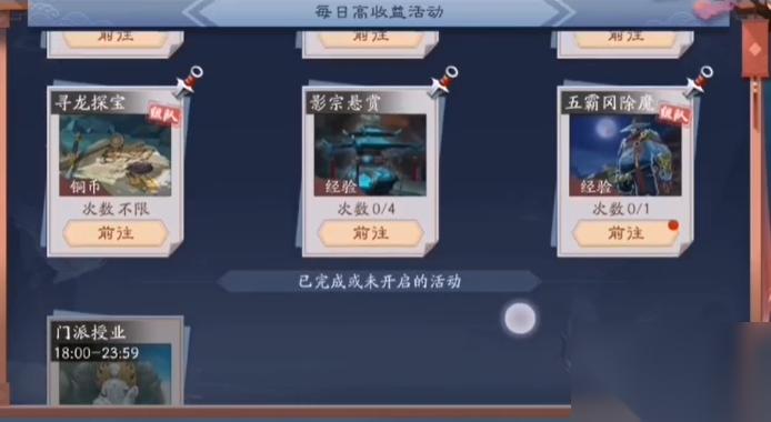 1-30级阶段应专注主线任务,约1小时即可完成,同时熟悉基础操作。30级后逐步开放江湖话本、门派修行等日常活动,需将日常任务置于主线之前,因其提供更高经验收益且有次数限制。特别要注意门派授业等限时任务,仅需挂机即可完成。60级后需合理分配精力,非必做任务可选择性放弃,避免过度消耗时间。每日活动图标中的分类提示能帮助玩家高效规划任务路线。
