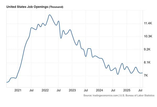就连“七巨头”也预测盈利增长将会放缓,主要原因是人工智能领域的巨额投入。 和亚马逊的利润预计将会大幅下滑,几乎降至零。至于劳动者,劳动力市场持续疲软,新增就业岗位正在减少。