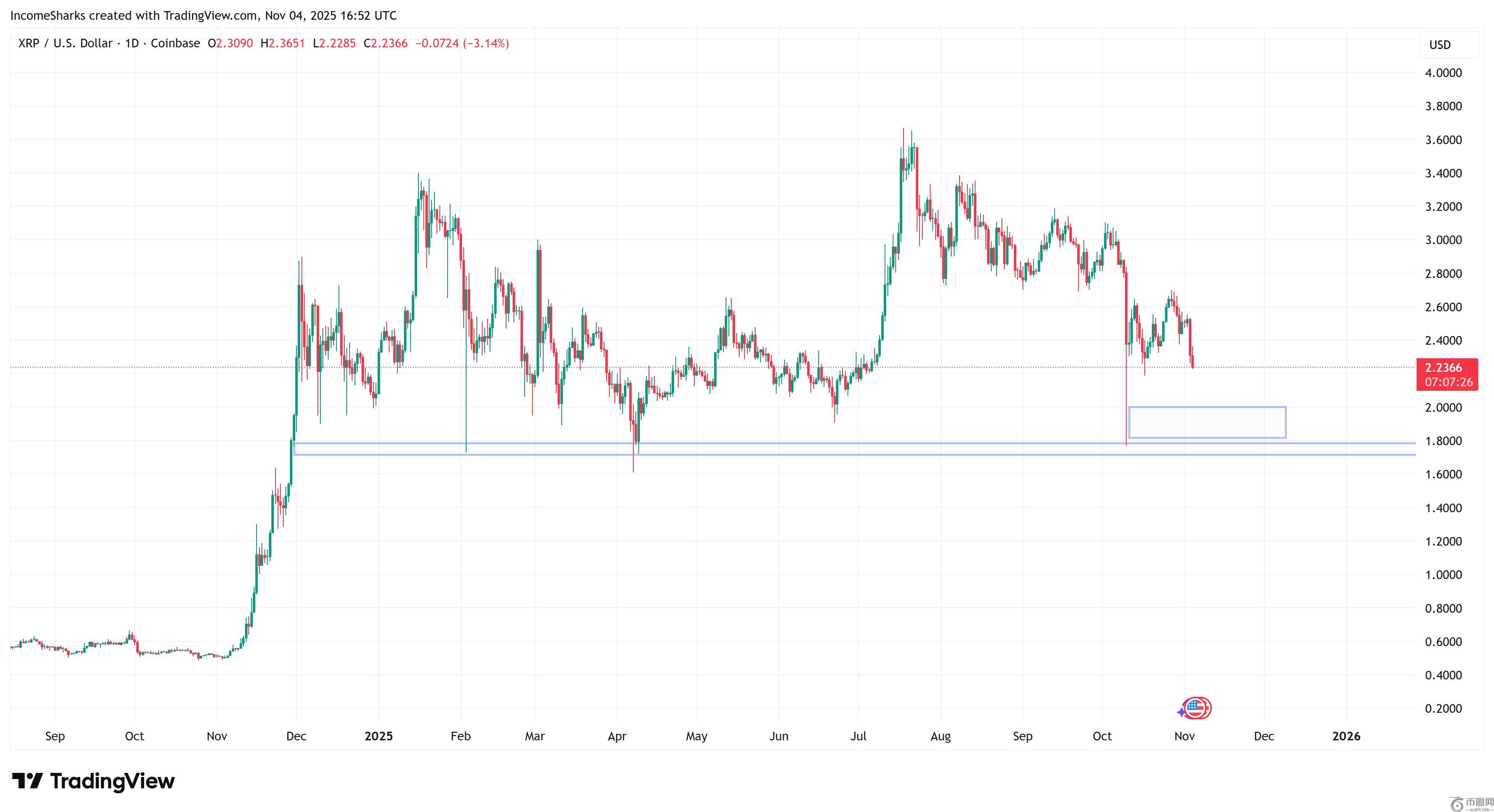 知名市场分析师 Income Sharks 表示,那些错过了 XRP 价格低于 2 美元机会的人可能很快就会有机会以该价位买入。