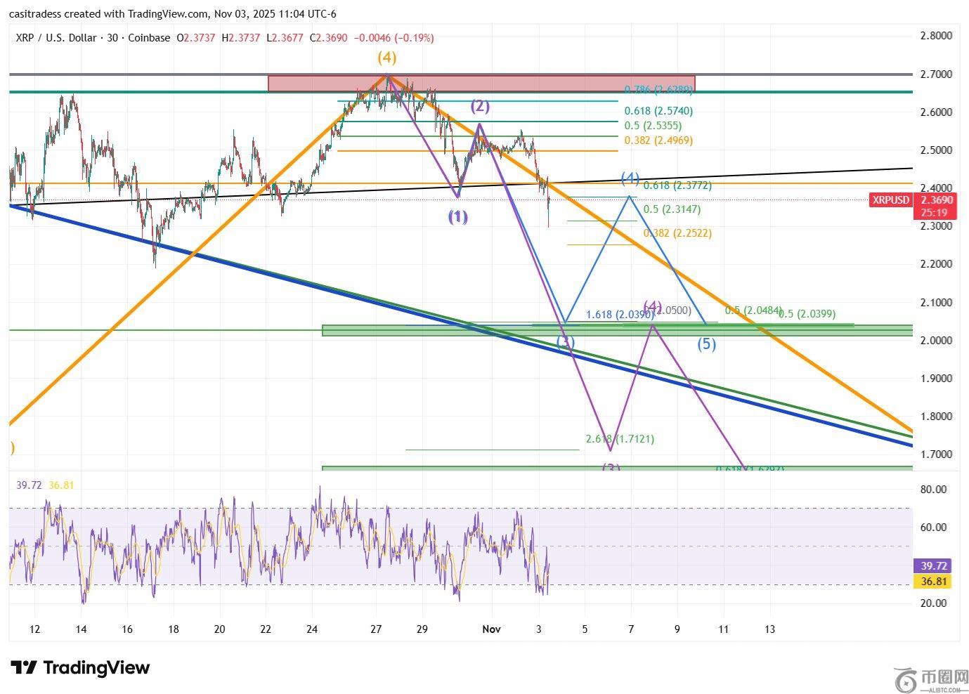 卡西,另一位著名的市场分析师相信下降到这个地区尽管有人坚称 XRP 保持了其长期看涨的结构,但 XRP 的价格可能很快就会跌至 1.72 美元至 2.04 美元之间。 根据分析师认为,一旦 XRP 满足了这一需求区域,下一个方向将是上涨至 7 美元至 10 美元之间,与第三浪(激增)相一致。