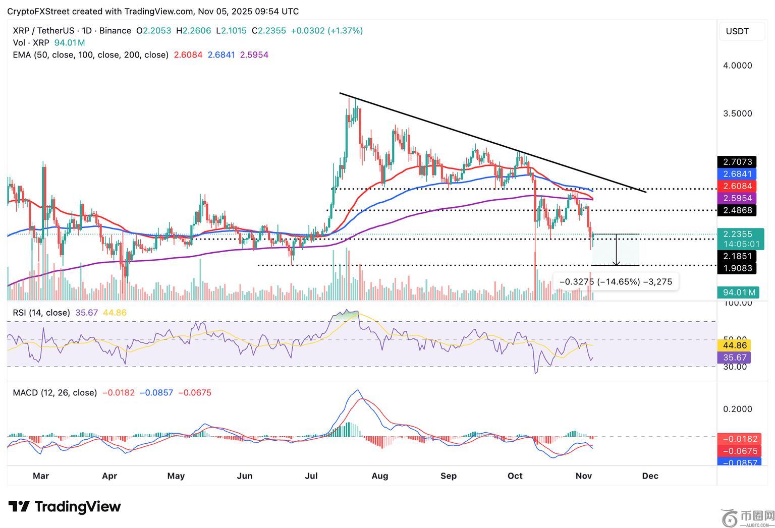 尽管如此,交易者仍应保持谨慎乐观,因为MACD指标自周二以来一直发出卖出信号。如果蓝线持续低于红色信号线,且该指标整体呈下降趋势,XRP价格可能进一步下跌近15%,至1.90美元,该价位曾在6月份触及。