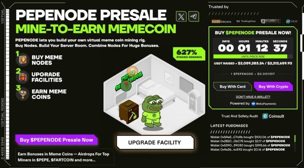 感觉就像早期的比特币挖矿,只不过是虚拟的,加入简单,而且更有趣。PepeNode 已经筹集了超过 200 万美元,你可以使用 ETH、BNB、USDT 甚至信用卡加入。