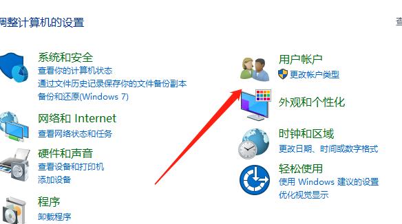 1、首先,找到并打开“控制面板”应用程序,找到“用户账户”选项并点击执行,如下图所示。