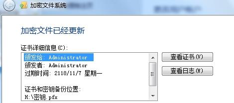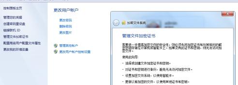 2、接下来,点击左列菜单上的【管理文件加密证书】,到加密文件系统设置阶段,如下图所示。