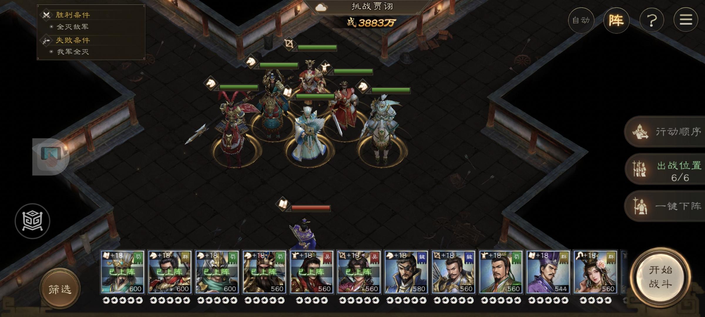 《新三国志曹操传》游历事件贾诩之影攻略!本关难度较低,可凭借强力输出阵容快速通关。推荐使用吕布、诸葛、周瑜等角色,利用其高额技能伤害进行爆发,通常两回合内即可结束战斗。