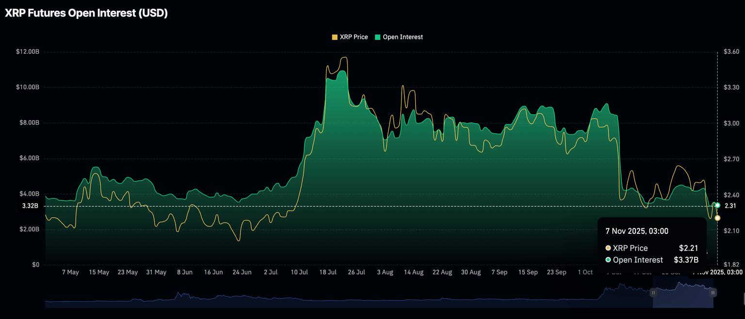与此同时,XRP的零售需求依然显著低迷,周四期货未平仓合约量为33.7亿美元,低于前一日的35.4亿美元。自7月中旬XRP价格触及3.66美元的历史新高后,未平仓合约量已从109.4亿美元的峰值下降了69%。投资者并不相信XRP能够在短期内扭转颓势并维持复苏。